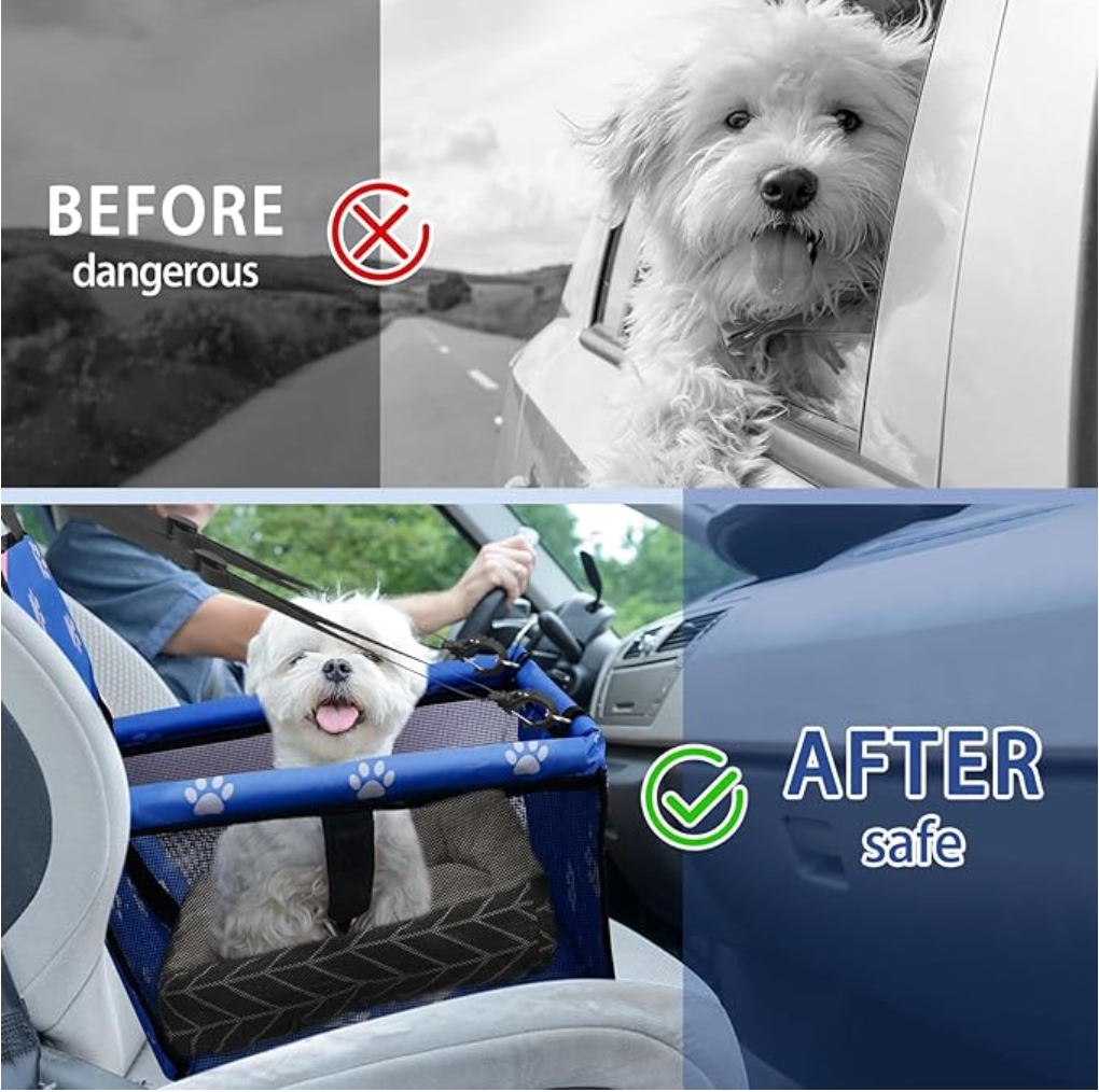 - Secure and Safe: Adjustable straps securely fasten the seat to your car, ensuring your dog stays in place throughout the journey.